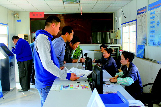 27日上午,青岛一检测站内,不少车主前来检车,其中三位车主免上线环检直接领取了“绿标”。 本报记者 吕璐 摄
