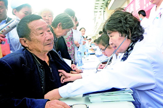 义诊现场排起了长队。 本报记者 邓兴宇 摄