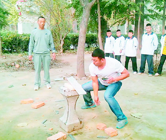 此功夫能在10分钟内空手劈砖348块,曾多次打破世界吉尼斯纪录。