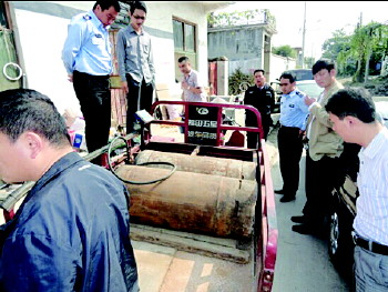 邹城市工商局组织19个基层工商所执法人员,深入全市城乡结合部、主干道旁边和偏远村庄,对加油(气)网点开展专项整治行动,打击无证无照、无安全保障设施的违法加油(气)活动,共捣毁违法成品油经销窝点4处,扣留用油桶储存的汽油200余升、手摇加油器两台。 本报通讯员 孔庆龙 摄
