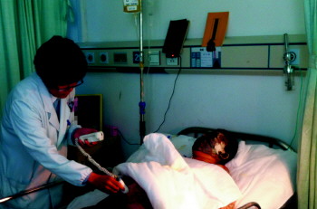 这一天是来探望焦炳影最多的一天,从上午到下午,好心人一直在陆陆续续地到来。焦炳影在普通病房,因为害怕感染,来探望的好心人只能在门口看看她的情况,递上自己的一份爱心,与焦炳先或者焦炳影的妈妈宋美香询问一下焦炳影的情况。这些人把一份份爱心捐款交到了焦炳影家人的手上,然后默默离开。