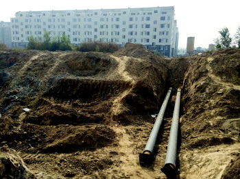 26日,天衢工业园内一新增供暖管网已经铺设到换热站下,换热站设备调试完后,便可接入到换热站达到正常供暖要求。 本报记者 贺莹莹 摄