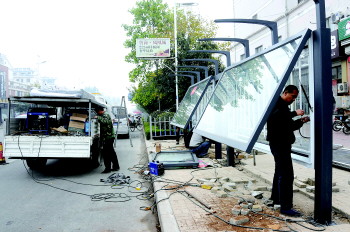 27日,记者在华英路上看到,施工人员正在安装新的公交候车亭。新式候车亭整体呈灰色,全部采用碳钢材料制作,比老式候车亭更加结实耐用。据公共汽车公司经理助理袁文东介绍,华英路正在安装新候车亭棚顶,当日已完成6个,预计30日完工。西安路也已完成地基工作,牡丹路正在做地基,长江路与黄河路正在拆除旧站牌,准备施工。两年内完成市区187处老式候车亭、站名牌更新改造工作。 本报记者 邓兴宇 摄影报道