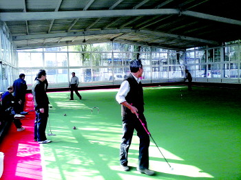 ◥门球场原为一片荒地,经13名老人多方协调而建成。