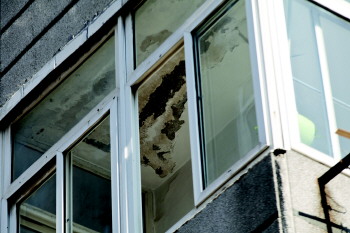 家住4楼的50多岁的李先生反映,他们家几年前在此买的房子,住进来后就发现阳台漏雨严重,“一下大雨,家里就从墙外开始渗水,阳台渗得格外厉害,房顶都渗透了不说,水都直接滴到地板上,最严重的时候得用好几个脸盆接着才行。”李先生说。