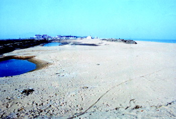 1994年11月,在原石油公司地址向北拍摄的万平口泻湖原始风貌。