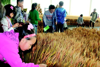 导游说,制作啤酒的第一个环节是糖化长廊,糖化阶段是啤酒酿造的第一阶段,将金灿灿的麦芽、清香的酒花和天然山泉水等原料制成可供啤酒酵母发酵的麦汁。随后,小记者们看到了一片麦田,这些全部是用真麦秸烘干而成。大家深吸一口气可以闻到麦芽的香味。