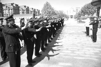 本报10月27日讯(记者 王震 通讯员 秦蕾) 针对学生上下学期间的交通安全,27日,交警三大队组织经区18所中小学负责人及保安进行培训,民警实地演示教保安疏导交通。