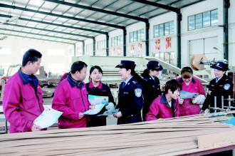为加强企业和在建工地工人的安全防范意识,23日上午,滕州市公安局善南派出所组织民警深入辖区企业和建筑工地开展安全防范宣传,指导企业做好防侵财性案件的自我防范工作,向企业员工和建筑工地工人宣讲安全知识。 本报见习记者 张龙 本报通讯员 李雨龙 摄影报道