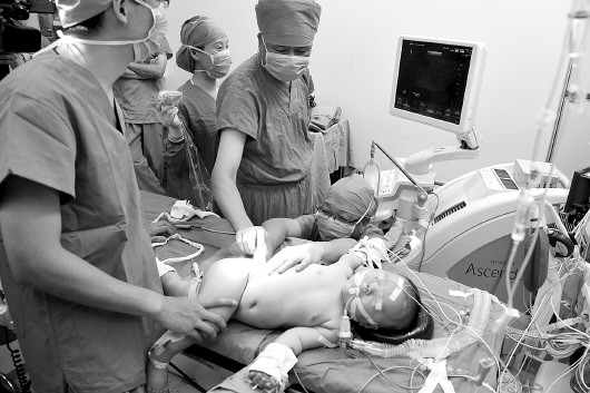 ◤医生给子萱做手术。 本报通讯员 杨建军 摄