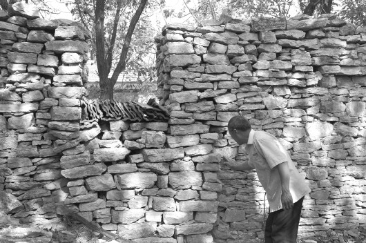石墙突出部分曾为单洪家修的作战用通道。