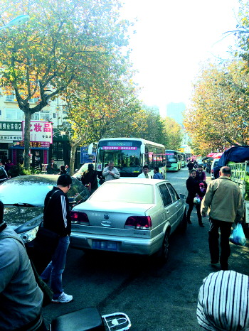 10点半左右,一位车主将停在路边的一辆车开走,自南向北方向车辆可以通过,但公交车必须轧在路沿石上才能勉强通过。10点50分左右,另一辆停在路边的车也开走了,自北向南方向也恢复通车。