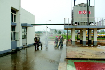 本报新泰10月28日讯(记者 陈新) 28日上午,港新燃气联合新泰消防大队模拟燃气一号储罐发生泄漏,开展了一场消防演练。