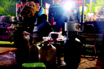 不少小吃摊贩使用煤气罐存在一定的安全隐患。