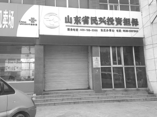 28日上午,记者看到山东民兴投资担保有限公司东庄办事处大门紧闭。李先生说,他今年8月在这家公司存了一万元。“我不经常来镇上,听人说这家公司信誉挺好,就来存钱了。没想到几天没见就关了门,我都没敢和家人说。”李先生说。