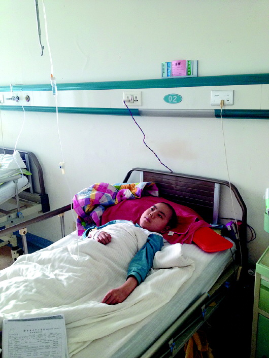 闫修红指着病床上的故事书说,儿子特别喜欢学习,小学在班里是前五名。由于一直住院,他六年级下学期就上了21天学。本想让儿子留一级,但他不服输,坚持要升初中,平时就在病床上自学,初中入学考试竟然考了全班第13名。