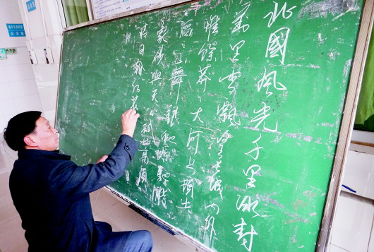 他不仅会在宿舍小黑板上写下安全须知和温馨提示,还不时写些诗词,写得最多的是《沁园春·雪》,经常引来学生围观。不少同学感叹:“我们的宿管大叔真厉害,感觉比很多老师写得都好。”