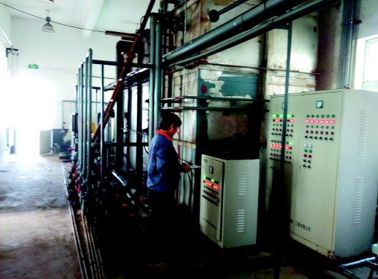 ◤生活垃圾处理场内工作人员在实施监控设备。