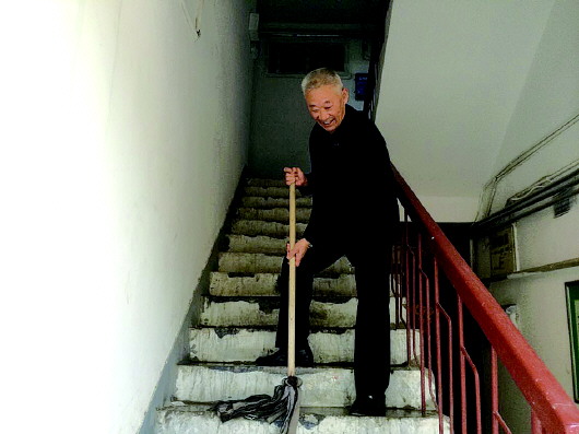 27日上午,孟宪和提着拖把刚把楼梯擦了一遍,然后把单元门口贴在宣传栏上的小广告清了清。“可不是光我这么干,邻里街坊们没事就拿着扫把出来扫扫,拿着拖把出来擦擦。”孟宪和说。