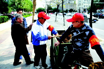 劝导员在街头打扫卫生。本报记者 李岩松 摄