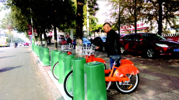 23日下午1点半,位于古槐路的博物馆公共自行车站点处,30个锁止器上只剩下了4辆自行车,家住樱花园小区的张女士正在取车去上班。“单位门口有公共自行车站点,小区附近也建上了站点,现在每天上下班大部分都是骑自行车,不用担心堵车,还锻炼身体。”张女士说,自从小区附近建立了公共自行车站点,每天骑车上下班已经成了一种习惯。