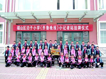 近日,福山区泊子小学的小记者达到五十人,为了方便小记者们在校活动的进行,并带动更多的同学加入到小记者队伍中来,本报记者专门来到泊子小学,与校方一起在校园内建立起了齐鲁晚报《今日烟台》小记者站,并为他们进行挂牌。