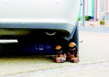 作品描述:这鞋垫的可不是普通人的脚,是车轮子。