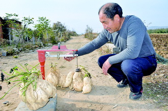 ▲王秀真称了称这个大地瓜,居然有24斤重。