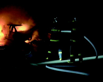 29日凌晨,一辆轿车撞上文登新一中附近的转盘后起火,司机被卡无法自救。文登消防广州路中队经过10余分钟努力扑灭大火,但司机已遇难。事故原因正在进一步调查中。