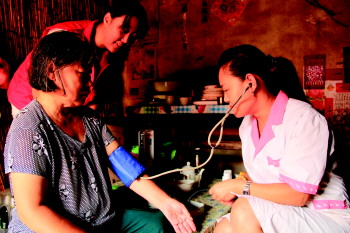 中庄镇计生服务站技术人员上门为计生特困家庭提供健康检查。