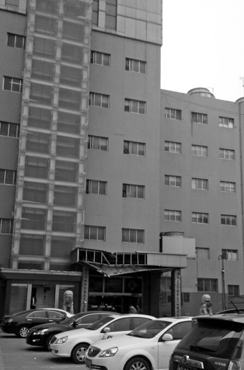 29日上午10点左右,该男子从路口东北角一栋高档写字楼坠楼,事件发生后,写字楼实行了戒严,只准人员、车辆出来,而非相关工作人员与车辆不得入内。记者下午1点多赶到现场,坠楼男子遗体已经被运走,大门遮雨棚被砸落一大块,工人正搭架子准备维修遮雨棚。