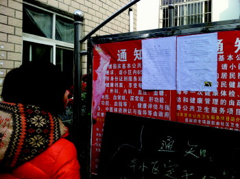 温泉花园小区一位业主正在看开发商贴出的收费通知。 本报记者 张召旭 摄