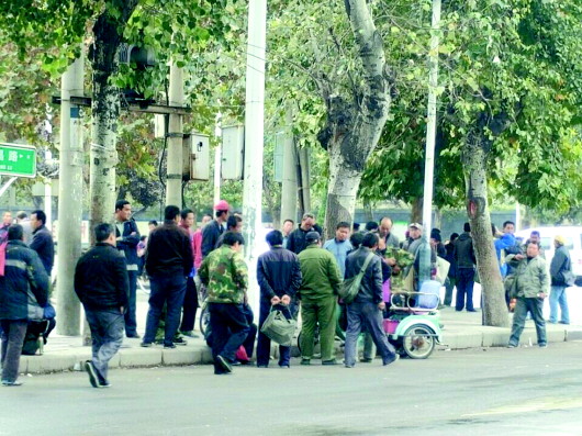 10月27日下午3点,记者来到文昌路与清河街交叉口,马路边聚集了好几十号人,见到有人来,他们一拥而上:“你有么活儿?”得知记者的来意后人们纷纷散去。