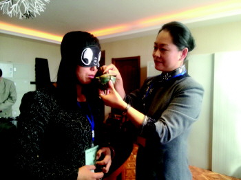 蒙着眼闻茶香说出茶名,肉眼为茶叶分级……29日,在崂山区枯桃花卉市场,青岛市首届评茶员职业技能大赛38名评茶师齐聚一堂,展开大比武,秀评茶绝技。评茶师需运用眼睛、鼻子、舌头、手等感官来“观察”茶叶,然后对浸泡后的湿茶,闻香气、看汤色、尝滋味、看叶底,进行综合评价。
