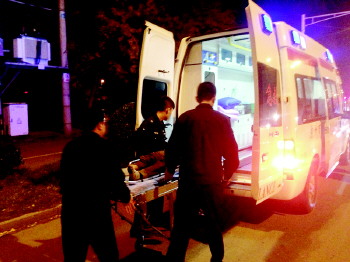 事发当晚,民警将两名伤者送上救护车。(图片由警方提供)