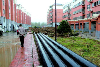 目前天德向阳小区正准备铺设热力管道。 本报见习记者 隋忠伟 摄