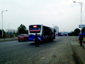 30日下午5点左右,一市民拨打本报热线称,泮河大街18路公交车玻璃被打了。记者赶到现场看到,事发地点在泮河大街泰工集团公交站附近,一辆18路公交车车头向西停在路中间,还闪着四角灯。