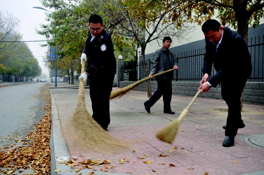 本报10月30日讯(通讯员 阚劲松 李明 记者 王璐琪) 为迎接省级文明城市复评,美化市容市貌,市城管执法系统的干部职工走到背街小巷进行环境整治,对占道经营的商店进行劝导,和环卫工人一起清扫落叶和垃圾。