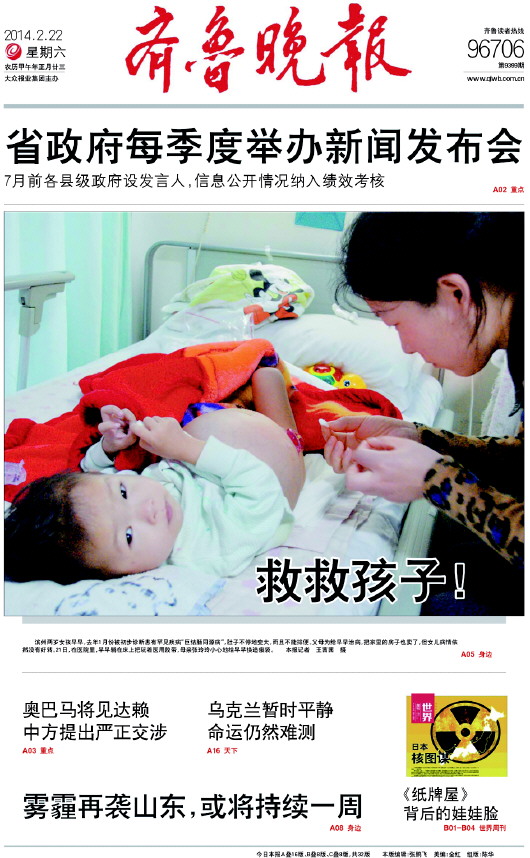●2月21日,早早已在滨州医学院附属医院治疗1个月,病情难辨。