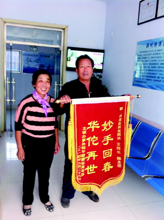 ◆治疗结果:患者自出院至今颈椎已无明显症状,对济滨医院的治疗非常感激。于是老俩送来一面锦旗,以表感激之情。