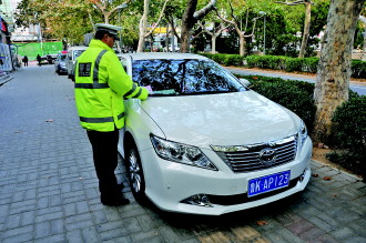 29日下午,在古陌路长征小学门口北侧,4辆汽车停放在人行道内盲道上,交警一大队民警为违章车辆贴了罚单。据了解,近日,交警部门将重点规范停车秩序,请车主按位停车、按序停车。