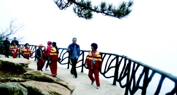 11月29日上午9时, 230多名游客陆续抵达沂蒙山龟蒙景区。刚从豪华大巴车上下来,孩子们便迫不及待向景点进发。
