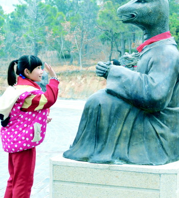 看到自己的属相,一名小游客很高兴。本报记者 于伟 摄