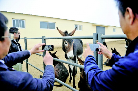 东阿阿胶生产基地的黑毛驴吸引了媒体记者们的关注。 本报记者 王媛 摄