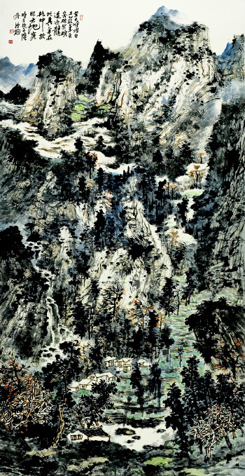 买鸿钧是河南博爱人,此次回到家乡办展汇报创作成果实现了他多年的心愿,看到如此多的家乡亲朋前来祝贺,画家的情绪更为激动。买鸿钧生于1969年,幼时受祖父好友林化南先生书法启蒙,入小学后随白河先生学画,后拜师修练武术,稍长又跟随当地名票逯树林先生学习京戏,18岁时他孤身北上谒见山水大家何海霞先生,多次聆听教诲,受益良多。2006年北京画院院长王明明慧眼识珠,买鸿钧成为北京画院的一位专职画家。幼时民间百家杂学启蒙了买鸿钧的书法、绘画,他的山水作品,既有北方山水的古奥结体,境界阔远深闳,又有江南小景一般的灵秀写意,题材、图像、笔墨、形式都打破了前人遗法,融通南北风格,依心游艺,尽显异端之美。在买鸿钧看来,山水画是中国传统文化的精神图式,一定要从民族文化的根源生发才能让这个古老的画种在新时代迸发新的生命活力。多年来,他坚持深入生活,不断在写生中发掘创作元素,努力深入研究中国传统山水画的精髓,使其作品慢慢丰厚。