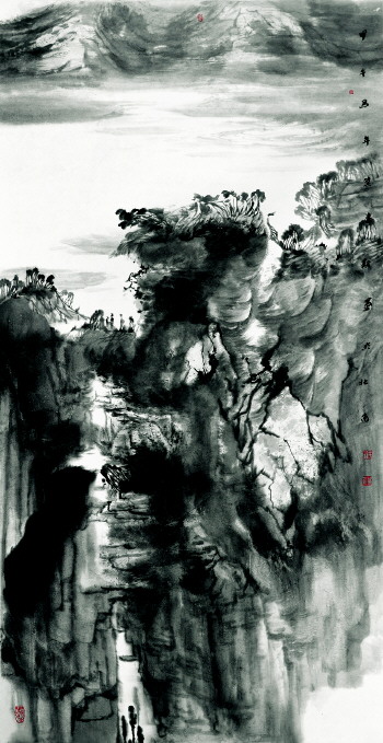 谈起创作,叶建新说,在研习山水画过程中,他把揣摩领会传统这个必经的功课从“器”的层面上升到了“道”的层面。他重视山水画的笔墨技巧,但不是一般地从传统中学几路笔法墨象,而是将身心投入于对传统山水经典之作地“感悟”之中,用“心’的“感悟”带出手的“功夫”。