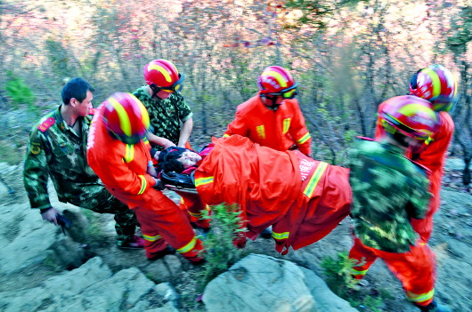 2日上午10时30分许,一名来自聊城的女游客在龙洞风景区藏龙涧不慎摔伤骨折。济南公安消防支队特勤二中队接到求救电话后,官兵火速赶到出事地点。医务人员对伤者简单包扎后,消防战士抬着伤员沿着崎岖山路,穿密林过荆棘,将伤者安全转移到山下。
