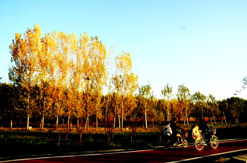 11月2日,雾霾散去,城市笼罩在蔚蓝的天空下。在减河湿地风景区,金色的阳光洒在两岸,夕阳西下,秋色斑斓。 本报记者 马志勇 摄