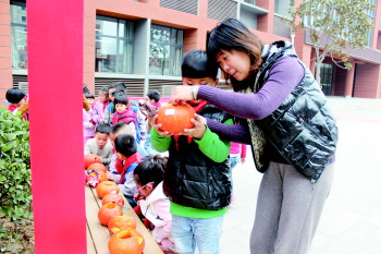 10月31日,学院附小组织万圣节活动,全校学生为万圣节做南瓜灯和面具。