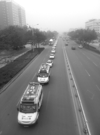 巡游车队在路上。本报见习记者 袁文卿 摄